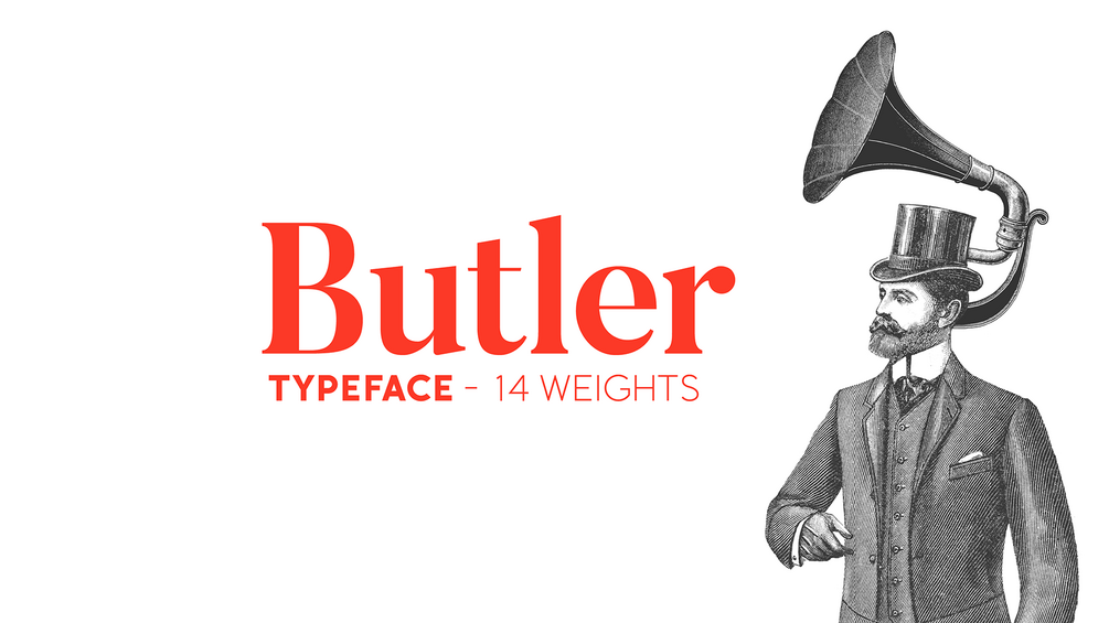 If you don't know it yet, Butler is a free font family designed to bring more modern curves and balance to the old and classy serif genre. Great for posters, big titles, books & fancy designs, the highly contrasted Butler typeface is pleased to be at your service.